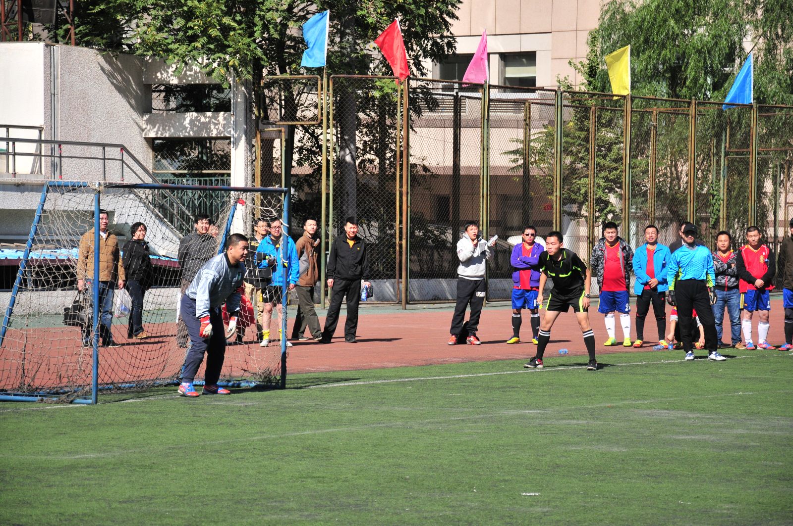 2013年10月15日月壇體育場,隨著裁判員的一聲哨響,廣安控股足球隊又一次踏上賽場。此次是參加由西城區總工會舉辦的全區第一屆職工運動會足球比賽,共32支參賽隊伍,本輪比賽對陣金融街集團隊。開賽伊始,雙方隊員迅速進入狀態,在攻守轉換中比賽以1:1平進入點球大戰階段。第一輪點球由中場隊員趙偉率先破門,隨后對方回敬一球,第二輪由前鋒隊員王勇再下一球,此時壓力又一次交給對方射手,我方守門員張育沉著冷靜將皮球擋在門外,比分最終鎖定3:2,廣安控股隊力克金融街集團隊,挺進16強。通過這次比賽,又一次鍛煉了隊伍,全隊再接再厲繼續為廣安控股增光添彩。
