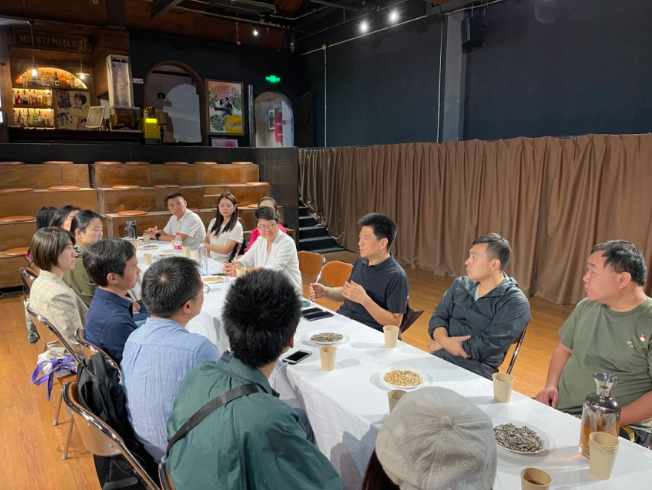 活動以五道街為起點,觀看了大柵欄地區游覽平面圖,參觀了鐵樹斜街非遺博物館、大外廊營胡同甲6號、櫻桃斜街茶室、櫻桃百花園等大柵欄城市更新樣板項目,最后到三井胡同的“門前聚場”。參觀過程中,大投黨支部滑斌向大家介紹了公司城市更新工作進程,講解沿途院落改造過程。參觀結束后,兩個支部就城市更新工作經驗在三井胡同的“夜鶯聚場”進行座談,大投黨支部書記王寅生介紹了城市更新工作成果及遇到的難題,同志們圍繞居民停車、產業規劃、街區管理等共性問題進行交流,并提出了意見建議。